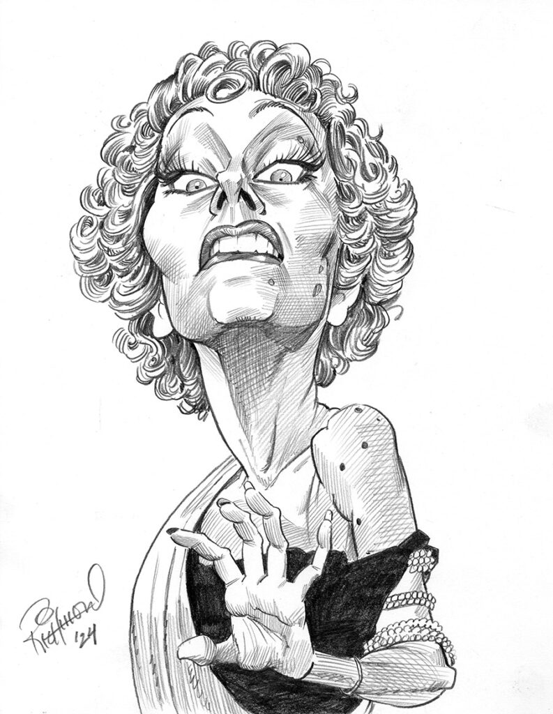 Here’s another of those famous moments in movie history that needs no preface, explanation, or context… it’s completely encapsulated in a single expression. The moment when Roy Scheider‘s “Chief Brody” first sees the shark in “Jaws” is part of movie history. In a rare departure from tradition, this original sketch is still available to buy! Jaws was released in 1975. I was nine years old, and this movie had a profound effect on me that I still remember to this day. Did I somehow see the film at only 9? I actually do not remember if I did or not. I doubt it. My parents… READ MORE