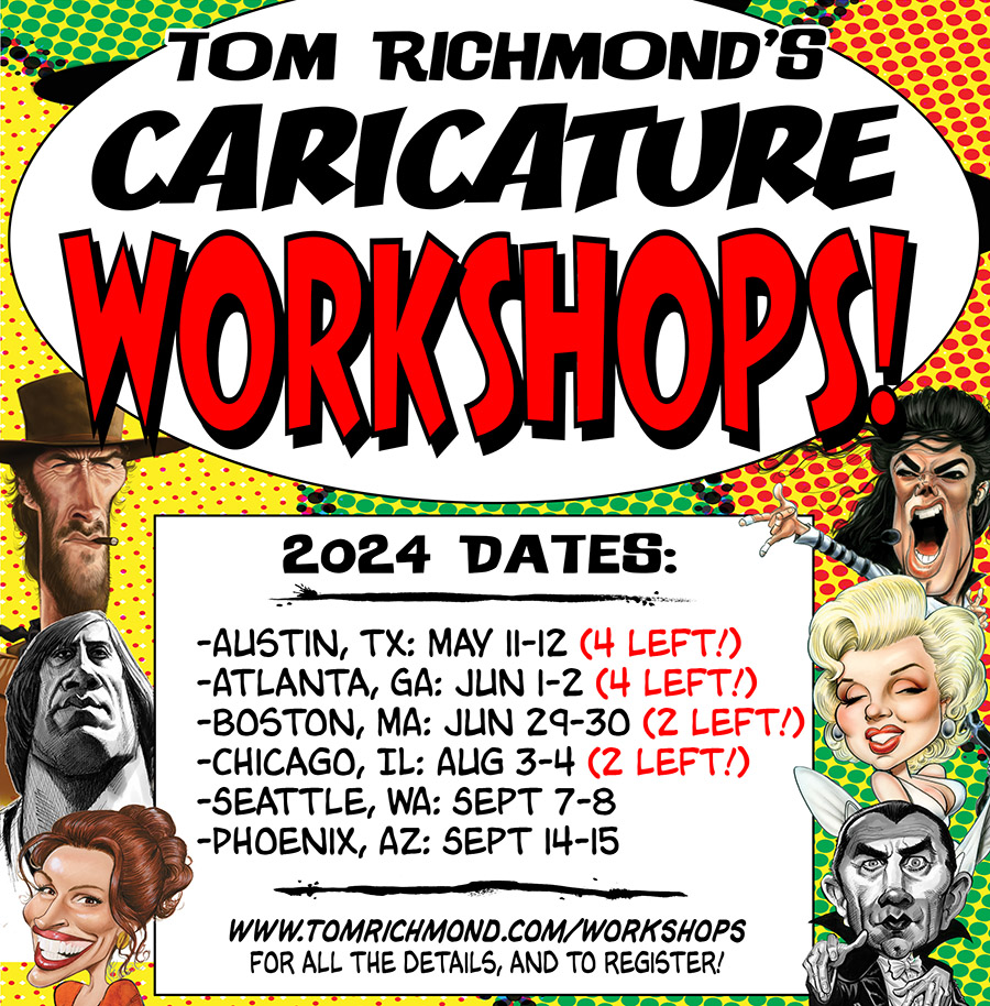 My “Sketch o’the Week Vol. 5: Special TV Guide Edition” is at the printer and should land on my doorstep the first week of May. This is a new collection of sketches and caricatures from my “Sketch o’the Week”, and this volume is themed around classic and current television shows and stars, many of which you have seen posted right here on Tom’s MAD Blog! The book contains over 150 caricatures over 62 pages, and is now available for pre-order! Well, what are you waiting for, schmuck?? READ MORE