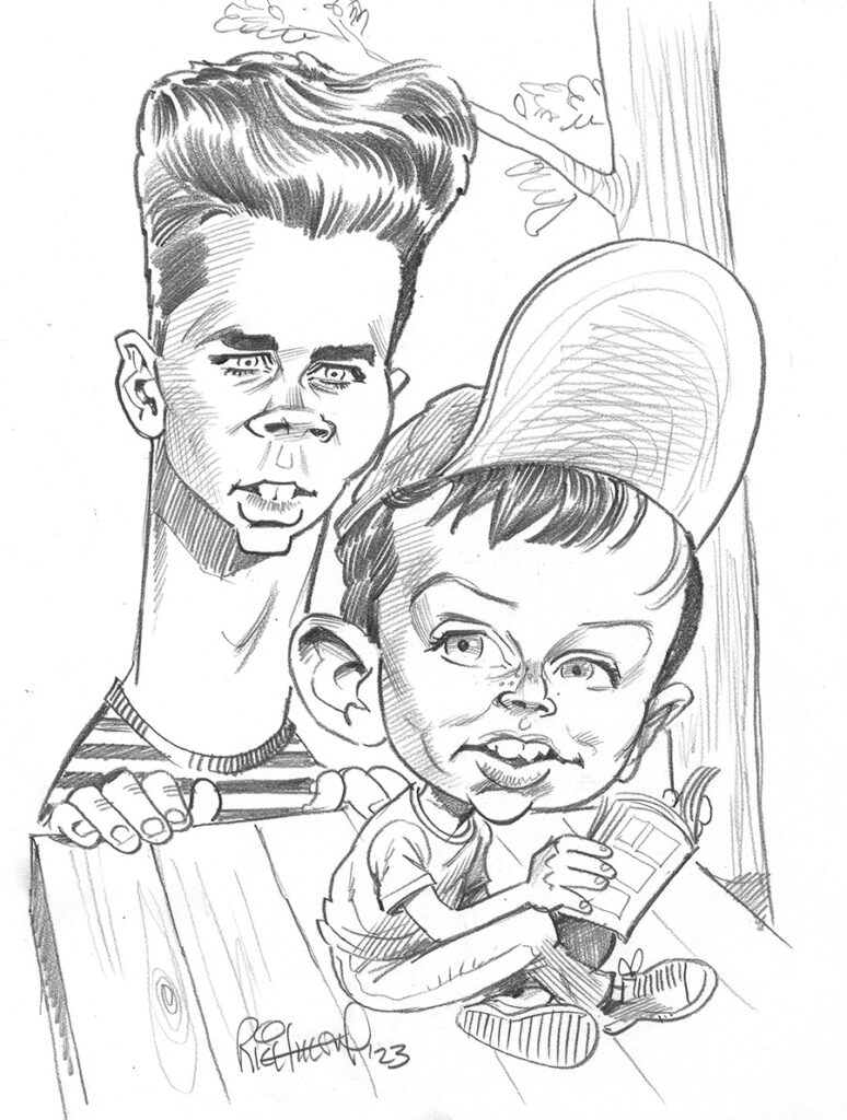 A very old joke… Ward and June Cleaver are at the breakfast table. “Ward?” “Yes, Dear?” “I think you were a little hard on the Beaver last night.” “Leave it to Beaver” was a show I sometimes watched after school, although it wasn’t often showing in syndication on my local channels. It’s a classic so I think it needed to be representing in our “Classic Sitcom” series. So, here’s a sketch of Tony Dow and Jerry Mathers as Wally and Beaver Cleaver. READ MORE