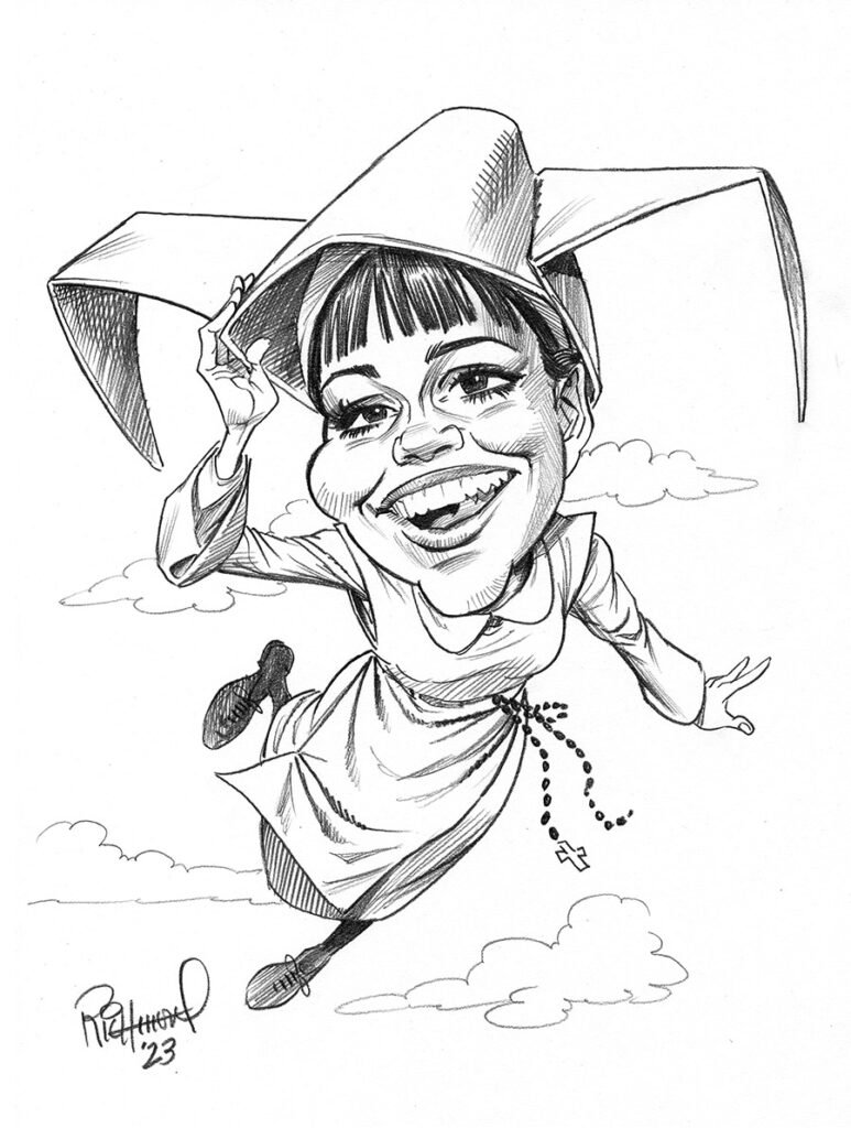 When lift plus thrust is greater than load plus drag, anything can fly… even a ridiculous sketch like this! We continue our series of caricatures from classic sitcoms with Sally Field as Sister Bertrille AKA “The Flying Nun!” This was another of the run of shows in the 60’s that featured some kind of fantastical gimmick like witchcraft, genies, monsters, etc… in this case a young, 90 pound sister in a convent in Puerto Rico that can fly via strong winds and her starched coronet. Field famously hated the part and her experience doing the show. She was pregnant in the third and final season, and considered… READ MORE