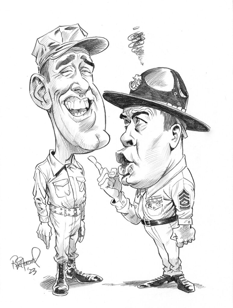 Gaaaah-lee! Just when I was thinking I’d run out of shows I actually watched after school as a kid, I remembered this one. “Gomer Pyle U.S.M.C.” was, of course, a spin-off of “The Andy Griffith Show” featuring the Mayberry NC gas station attendant turned Marine “corpse” recruit Gomer Pyle played by Jim Nabors, My caricature also features the often exasperated drill instructor Sgt. Carter, played by Frank Sutton. This show wasn’t syndicated as often as some at that time, so I only caught it occasionally when it did run. One thing I always wondered about… was “Gomer” his actual name, or a nickname? For all I knew,… READ MORE