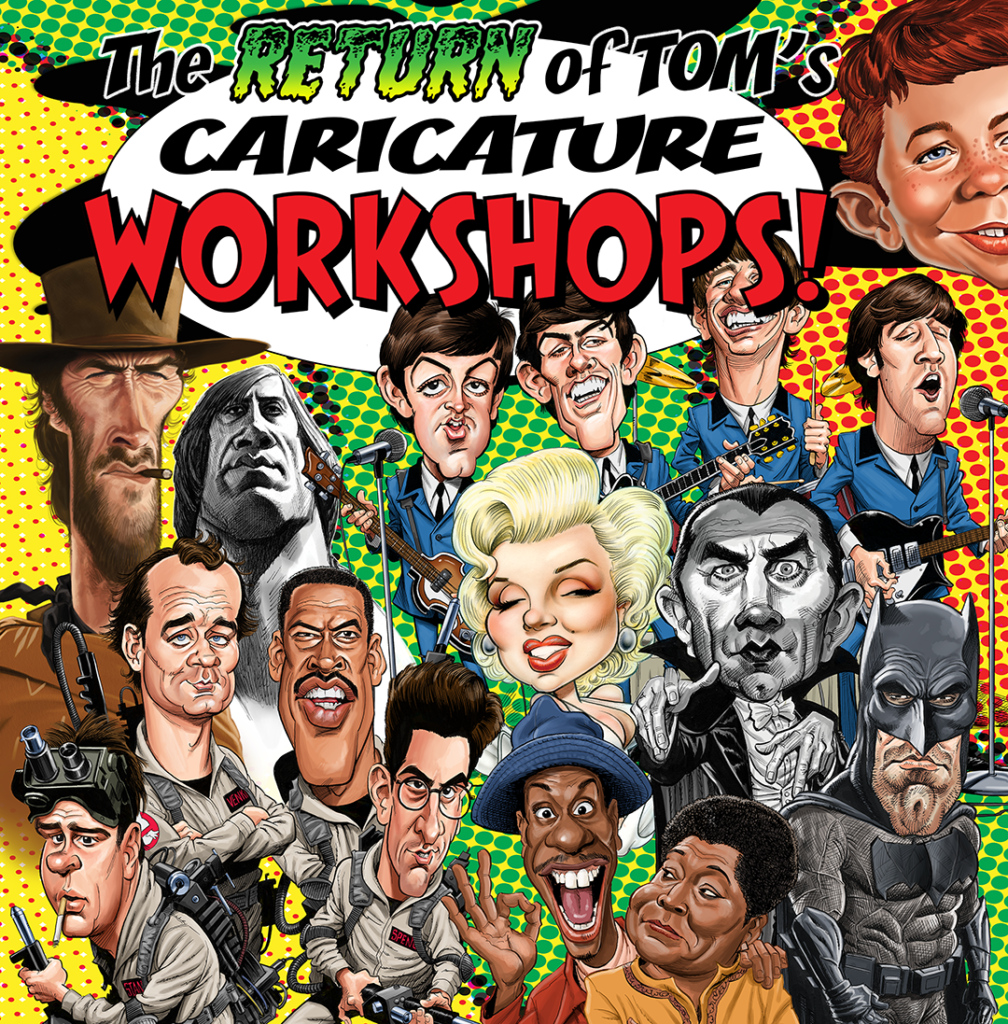 Here is a big announcement… Tom’s Caricature Workshops are BACK! I am nearing completion of CLAPTRAP, the long delayed crowdfunded book Desmond Devlin and I are doing, and I am beginning to make post CLAPTRAP plans including getting back to doing my two day “in person” caricature workshops in locations all over the U.S., and even overseas! When the pandemic hit in 2020, I was doing eight to ten workshops a year and had multiple ones lined up for the summer and fall of that year. Thanks to COVID I had to either cancel or postpone and reschedule them all. I eventually managed to get most of those in over… READ MORE