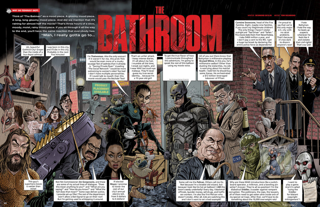 Welcome again clods to another installment of the rapidly closing trail of travesty that was my work for MAD Magazine… Oh look! ANOTHER “Batman” assignment! If you’ll recall our last two episodes featured a Batman cover and a two page Batman gag feature from MAD #23. It’s a good thing I am well versed in all things Batman! It was almost a year previous I did those two pieces for #23. Since then, nothing. Zero. Nada. Zip. Goose egg. Zilcho. It looked like maybe I was really done with MAD. Then the 70th anniversary of the magazine happened, and the beancounters in the accounting department… READ MORE
