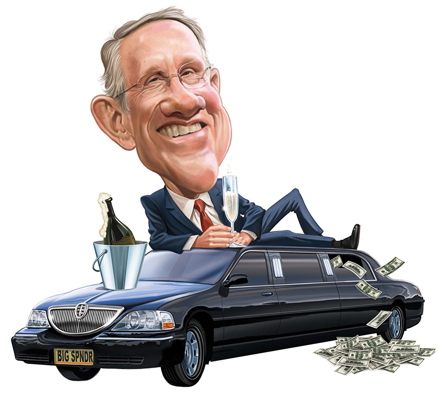 If you do freelance illustration long enough and for enough different clients, you eventually come across some piece you did where you cannot remember the client or the purpose of the illustration! This is one of those. I know I did it in 2010 because that’s the date on the digital file, but I cannot remember who or what it was for. I dimly remember it being for some kind of conservative political group’s internal media use. Anyway it was supposed to be an illustration of then Senate Majority Leader Harry Reid, depicting him as a big spender. I did a number of rough concept… READ MORE