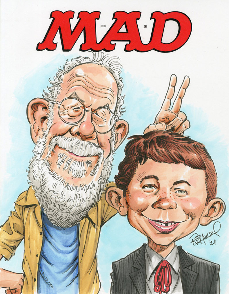 I’m still on my hiatus from doing a new “Sketch o’the Week”, so here’s yet another “mock MAD cover” commission from last month’s “Virtual Artist’s Alley” event. This one is a recreation of my Al Jaffee caricature from MAD #14. Brush pen and Copic markers on 9×12 bristol. READ MORE