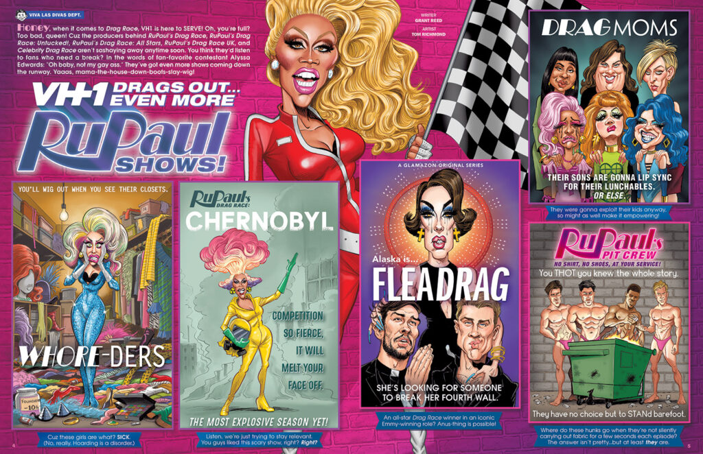 Here we go with another of the stumbling steps on the path that was my work for MAD Magazine. This week is another oddball sort of assignment that, frankly, I still have no idea what the joke was really supposed to be. It was written by Grant Reed, and appeared in MAD #13, June 2020. I guess it’s supposed to be a spoof of an ad for the “Trinity Broadcasting Network”, which is a large religious TV network, incorporating Kanye West‘s self-deified new name “Yeezus” and comparing the huckstering ways of the Kardashians and the church network, which solicits donations on its web site in… READ MORE