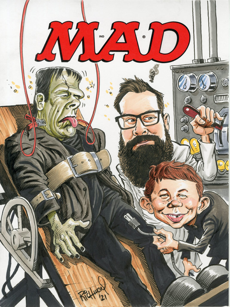 No “Sketch o’the Week” today, or maybe for a while. Between work on CLAPTRAP, a freelance job that is a lot of work with a tight deadline, and all the artwork I still need to do for my “Virtual Artist’s Alley” event, I am swamped. Here’s one of the “Mock MAD Cover” commissions I did recently for a customer. Tombow brush pens and Copic markers on 9 x 12 bristol. READ MORE