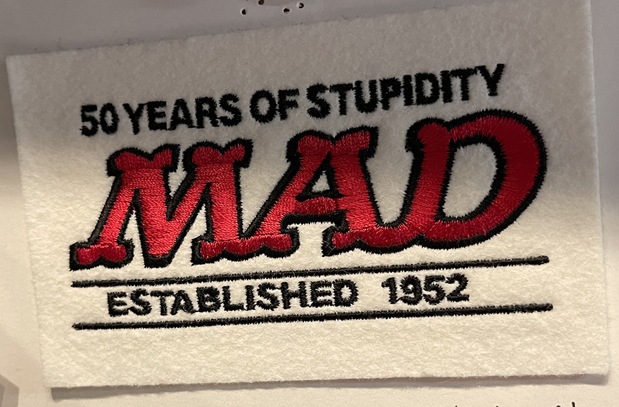 I started with MAD in mid-late 2000, and only two years later the magazine celebrated its 50th birthday. I took it upon myself to have embroidered polo shirts made for the MAD staff. This picture is of the prototype embroidery design that was sent to me for approval back in 2002, and it’s tacked up on the corkboard wall of my studio. This was set on the “pocket” area (aka the left chest area) of some very fancy Bill Blass polo shirts. I had about 15 made I think. Sadly the shirt project was a bit of a disaster. The embroidery turned out nice but… READ MORE
