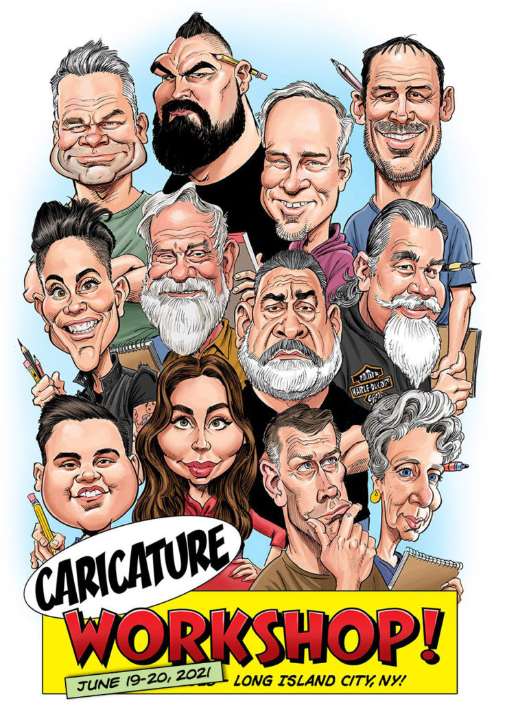 I’m not sure if you are aware of this, but some things happened in 2020 that forced me to cancel or postpone a bunch of my in-person caricature workshops. It’s a long story but last May this motley crew seen above was SUPPOSED to spend the weekend drawing together in Long Island City, NY. We had to postpone the workshop and then tried to reschedule it for August, optimistically thinking the pandemic would be under control by then. Well… it wasn’t. I was able to squeeze in a couple of workshops in Detroit and Chicago during the short-lived downtick in the pandemic this past late… READ MORE