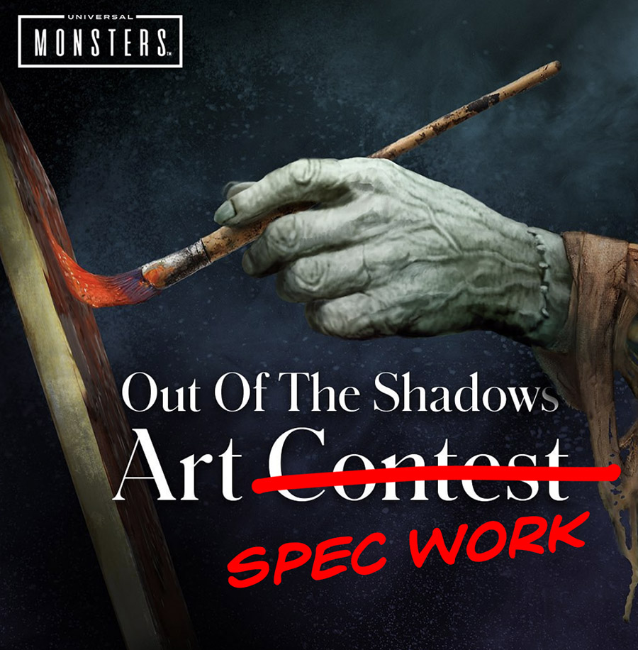 Yet another major company that should know better is conducting another of those online “art contests”, where they invite artists to create visual pieces of art for “a chance to win $$$” and of course to have your work recognized by “really important people”. This time it’s Universal Pictures, and they want artists to create a new horror character to go along with their famous line-up of horror/monsters for a chance to win $10,000 and to have your work “recognized by a panel of visionary Hollywood filmmakers and creatives”. And, of course, like all of these “contests” this is part of the rules: BY SUBMITTING… READ MORE
