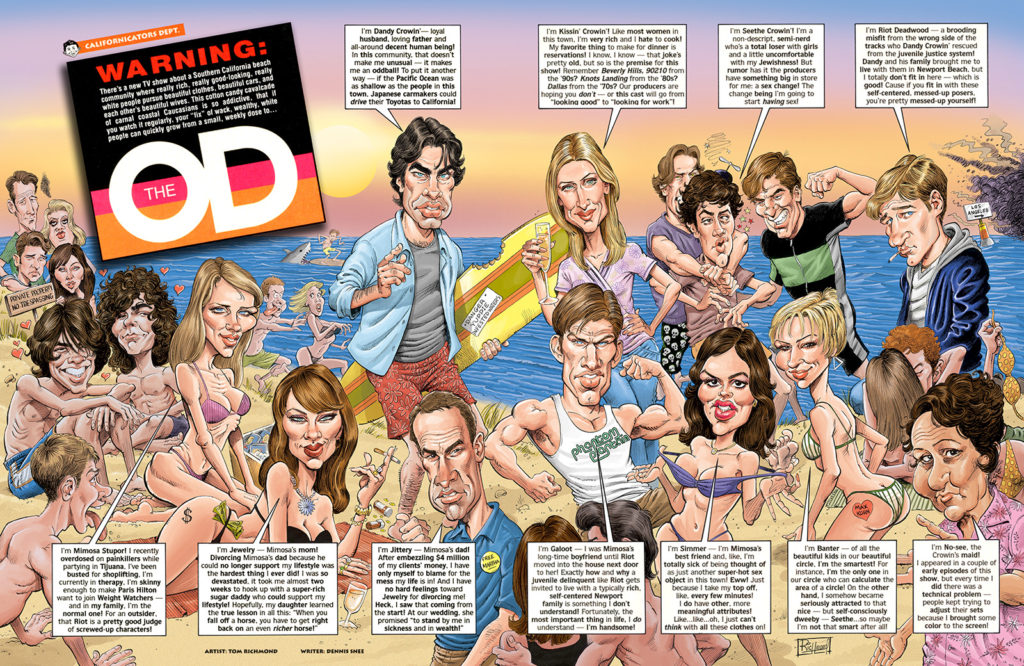 We are back on track with another exciting episode of our chronological crawl through my work for MAD Magazine! This week features MAD’s spoof of the TV show “The O.C.” written by Dennis Snee and appearing in MAD #442, June 2004. I have some of the original pencil roughs for this one as well as the finals. This show was set in Orange County, California and was about teenagers from that area. I knew a couple of teenagers from OC, Joe and Luke McGarry, who were the teenage sons of cartoonist Steve McGarry, then president of the National Cartoonists Society. So, I drew Joe and… READ MORE