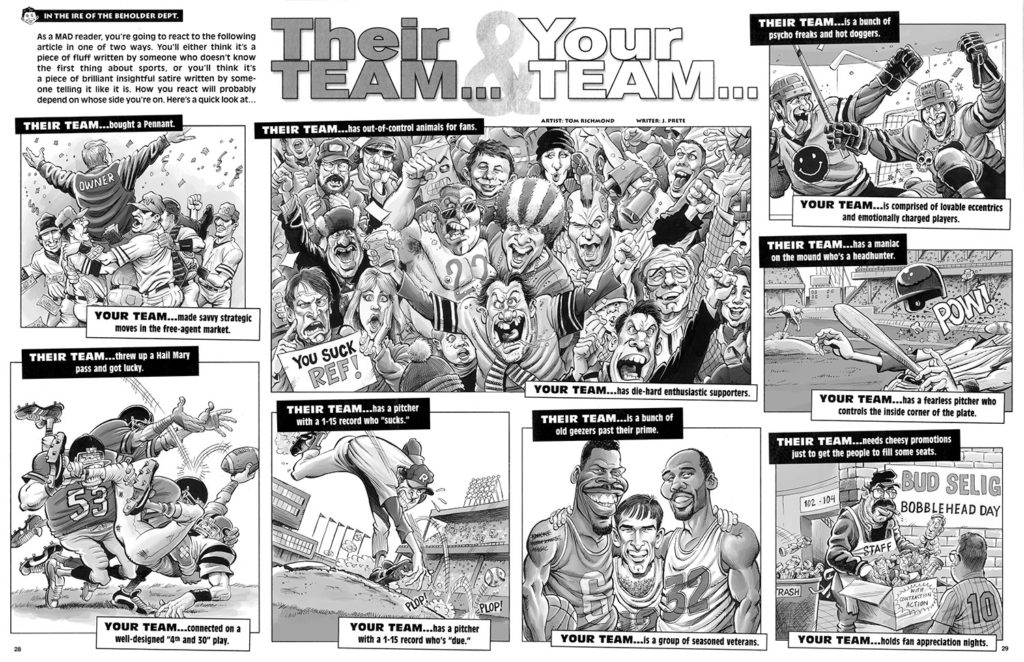 My next assignment for MAD appeared in issue #416, May 2002. It was a return to a sports-themed feature called “Their Team…& Your Team…” written by John Prete. I started for MAD at almost exactly the time it switched to a color format. In fact a big part of why I started getting work from them was that they were planning the switch to color and I did my own digital coloring. In the 20 years I did work for the magazine, I only ever did four jobs in black and white. This was one of them. This was, however, the first black and white… READ MORE