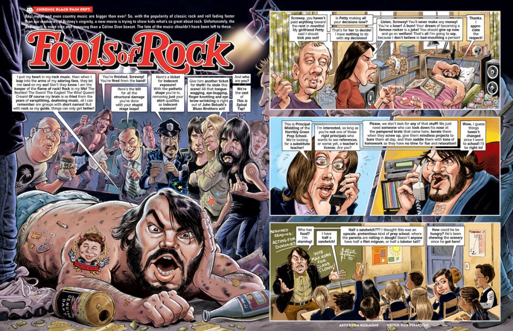 Apologies for the lack of posts around here recently. I’ve been either on the road or on deadline. In fact I’m on the latter today and the former again tomorrow! In the meantime today’s Monday MADness features a look at my final art for MAD‘s parody of “School of Rock” written by Dick DeBartolo from MAD #438, Feb. 2004. READ MORE