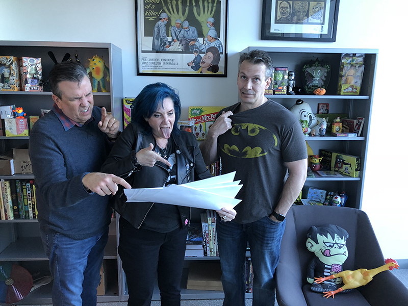 Pictured: MAD Executive Editor Bill Morrison and Art Director Suzy Hutchinson going over the pencils for my first parody with them… went better than I expected. The Lovely Anna and I dropped by the new MAD offices in Burbank while I on my west coast workshop tour. Most of the stuff from the NYC offices had just arrived and was still in boxes, but things were definitely looking MAD there. All the offices have colored glass sliding doors with DC characters and scene on them, including a few MAD ones. Clark and I working on a story… Perusing Bill Gaines’ personal bound copy of the… READ MORE