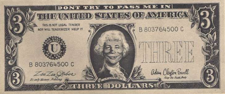 Mental Floss has a great article about time MAD printed a phony $3 bill as part of an article and got in some trouble with the FBI and the U.S. Treasury Dept. The article in question appeared in MAD #115 (the same issue that Mort Drucker and Dick De Bartolo‘s famous parody of Star Trek, “Star Blecch” appeared). It was entitled “MAD Mintlies” and featured phony coins poking fun at obsessed coin collectors. It also featured the fore mentioned fake $3 bill. Art by Bob Clarke, BTW. Despite the fact that it was cheaply printed in black and white, featured none of the engraving or… READ MORE