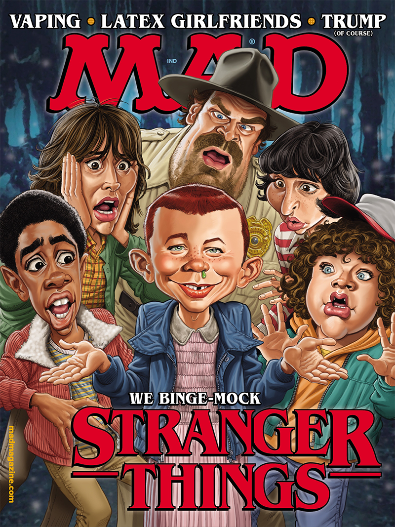 Entertainment Weekly just posted an exclusive sneak peek of MAD #548, featuring my second MAD cover as well as a look at the splash page of the corresponding parody I did the art for… “Stranger Things”! Visit the EW website for a much higher resolution look plus some more info on what you can expect in the next issue of MAD Magazine (big deal!)! READ MORE
