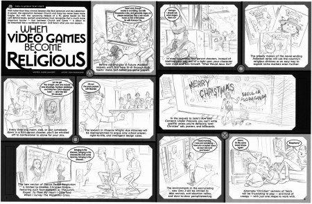 From MAD #471, Nov 2006, a two page feature called “When Video Games Become Religious” written by Jacob Lambert. The pencil roughs in the layout and the individual final art panels: Clicky to embiggen… Clicky to embiggen… Clicky to embiggen… READ MORE