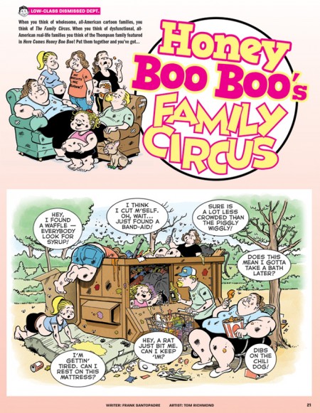 On news stands everywhere tomorrow, in comic book shops and subscriber’s mailboxes already and available digitally immediately via the MAD iPad app. MAD # 520 (April 2013) Cover (Chris Houghton) The Fundalini Pages (Jeff Kruse, Charles Akins, Jason Yungbluth, Rick Tulka, Desmond Devlin, Matt Lassen, Paul Coker, Ty Templeton, Evan Dorkin & Sarah Dyer, P.C. Vey, Kevin Pope, Tim Haggerty, Leonardo Rodriguez, Phil McAndrew) The 50 Worst Things About Cartoons (Writers: Desmond Devlin, Jeff Kruse and Scott Maiko; Artists: Peter Bagge, Anton Emdin, Adam Koford and Hermann Mejia) Honey Boo Boo’s Family Circus (Frank Santopadre, Tom Richmond) Planet TAD!!!!! (Tim Carvell) Spy vs Spy (Peter… READ MORE