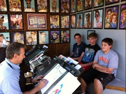 I’m currently in Massachusetts where my theme park art concessions just opened at Six Flags New England, and I’m even working the chair! These guys are clearly thrilled to be getting thier drawing done… Another satisfied customer(s)! READ MORE