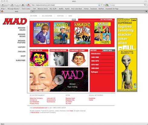 Yesterday MAD very quietly revamped their website to a new, cleaner and more streamlined design. You can now browse the PDF previews of back issues of MAD and extras like MAD Classics, etc. There are links to the Carto0n Network show and promo videos, “The Untold History of MAD” timeline by Desmond Devlin, a page with downloadable parody posters, and even a collection of the “Idiot of the Issue” feature from the old MAD Classics, which features an interview/bio of members of the Usual Gang of Idiots in PDF form! Nice to see this… yet another sign MAD is not being ignored by the new… READ MORE